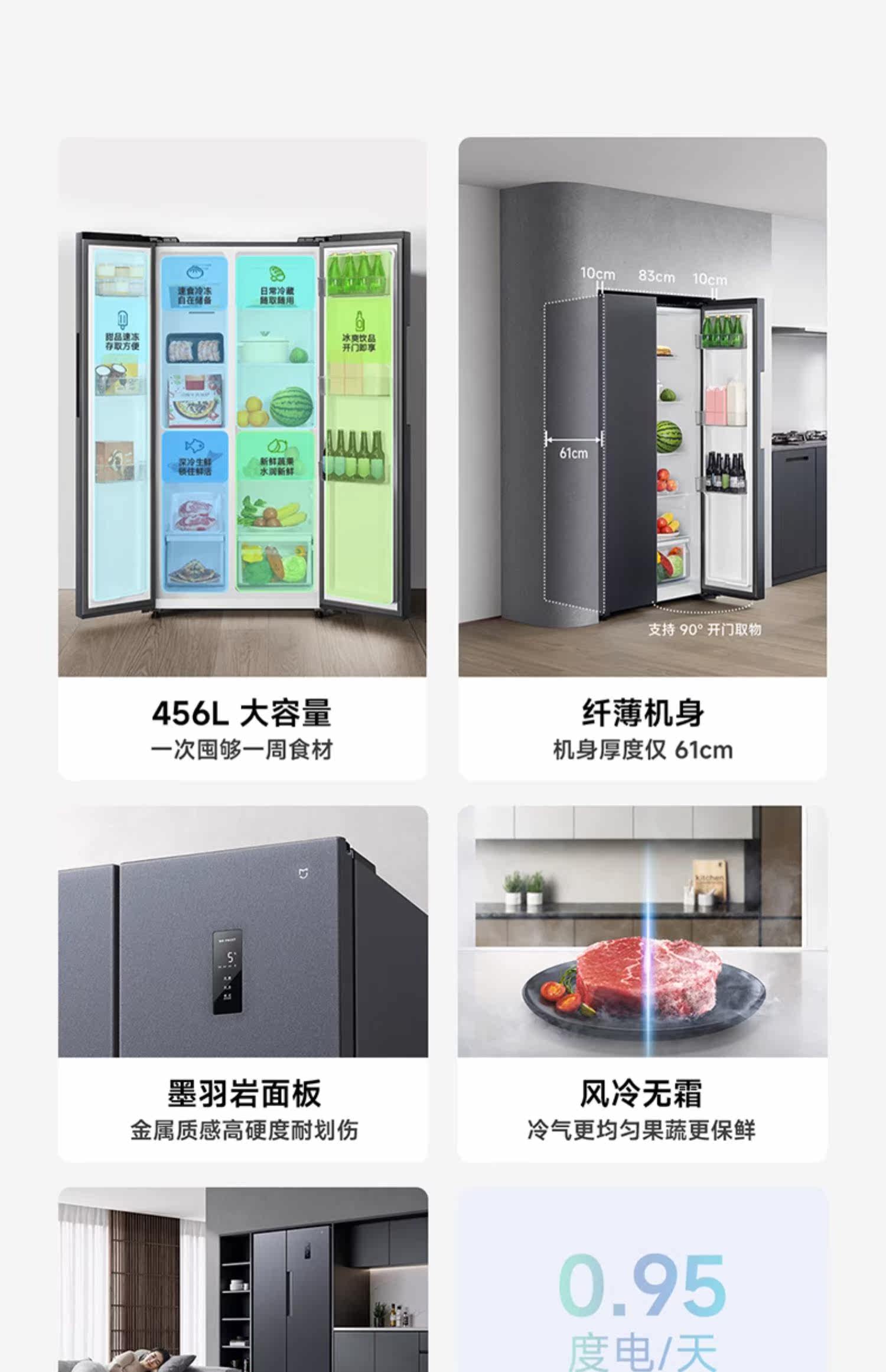 小米456L双开对开门风冷无霜冷藏冷冻静音超薄嵌入式米家家用冰箱