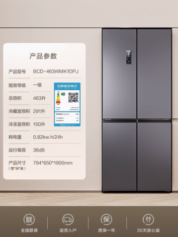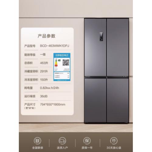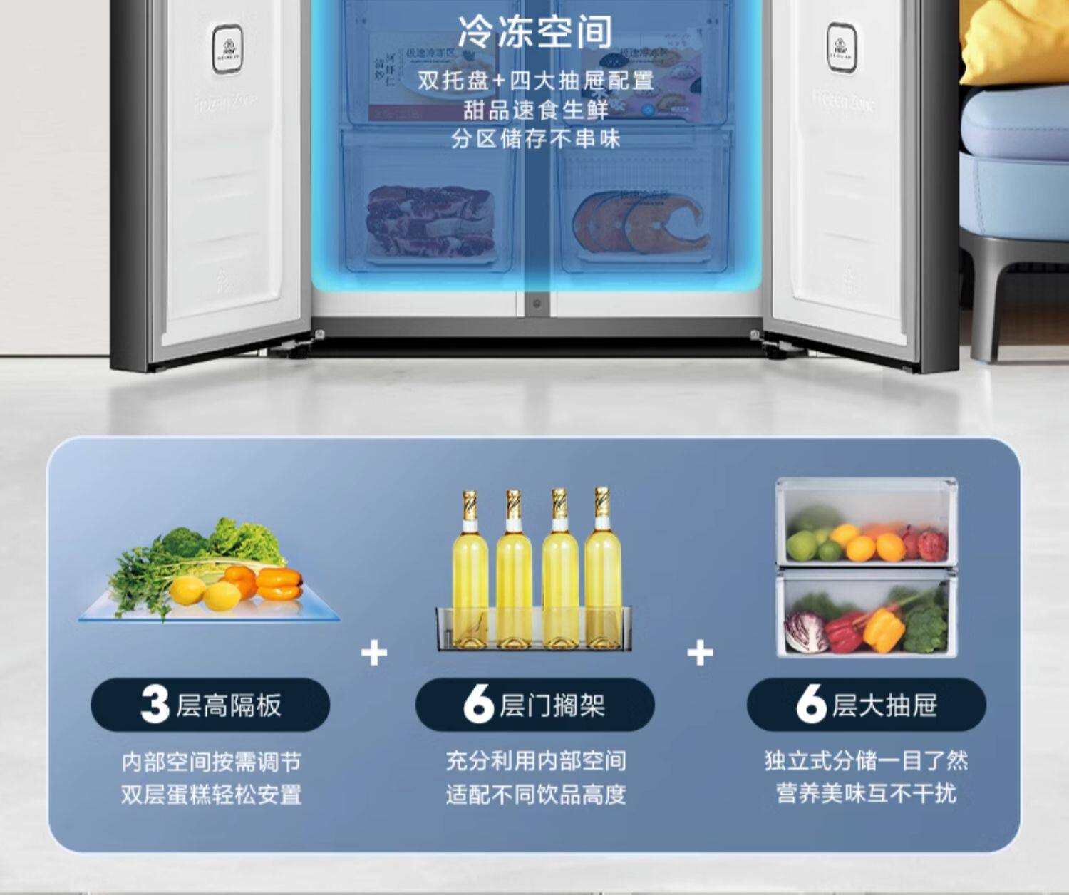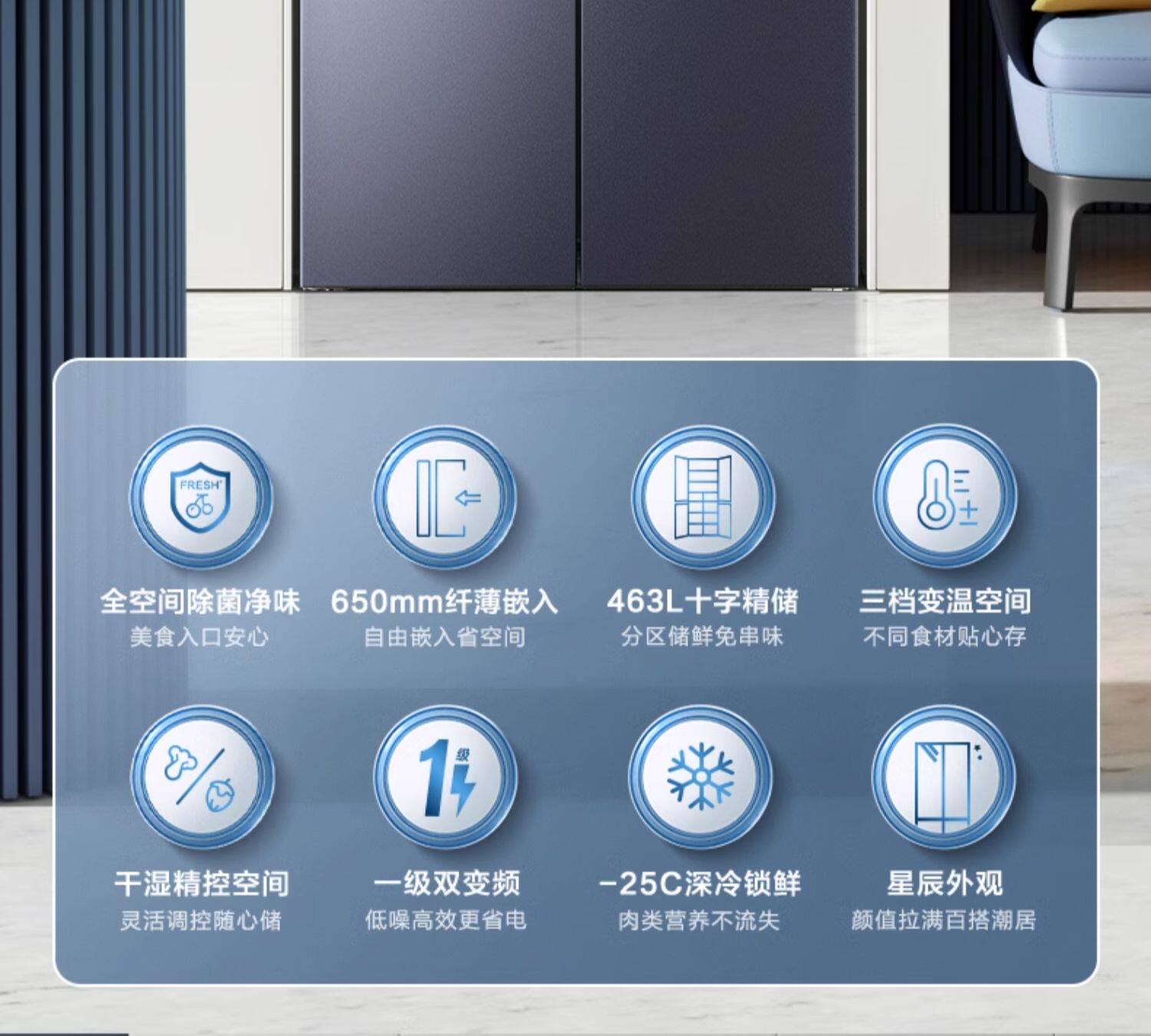 海信463L升十字对开门家用冰箱风冷无霜一级能效变频节能薄嵌入式