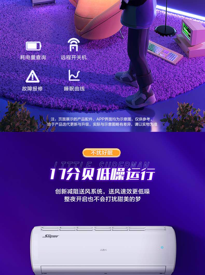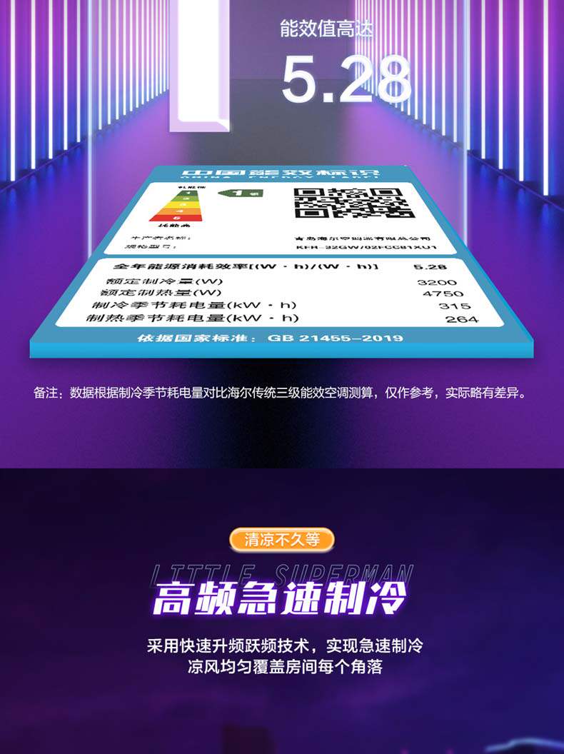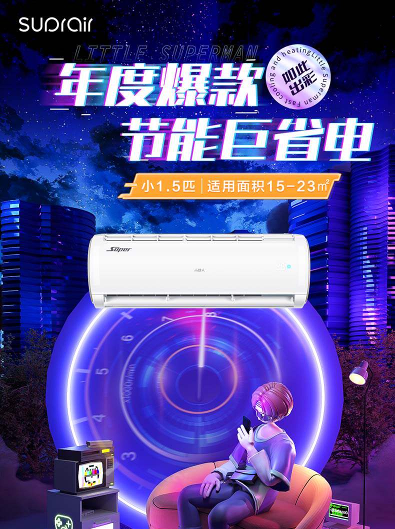 小超人小1.5匹新一级冷暖家用空调卧室挂机32FCC