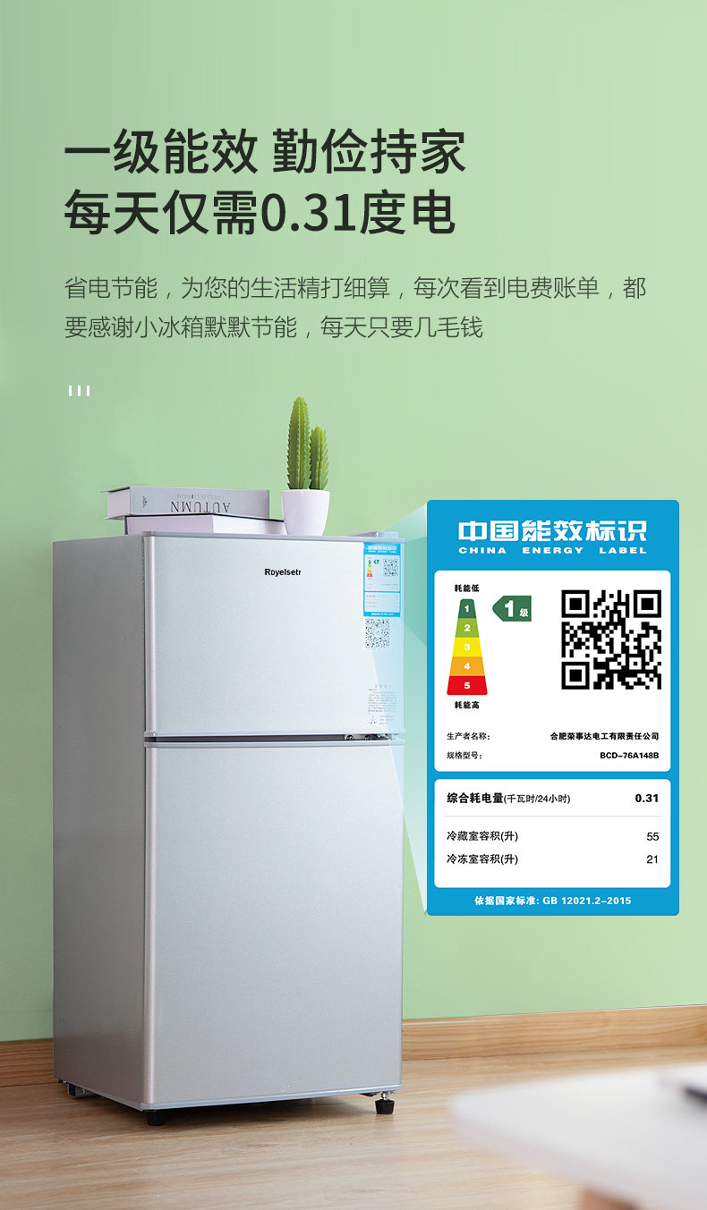 一级能效小冰箱家用小型宿舍出租房小户型办公室迷你单人节能冰箱