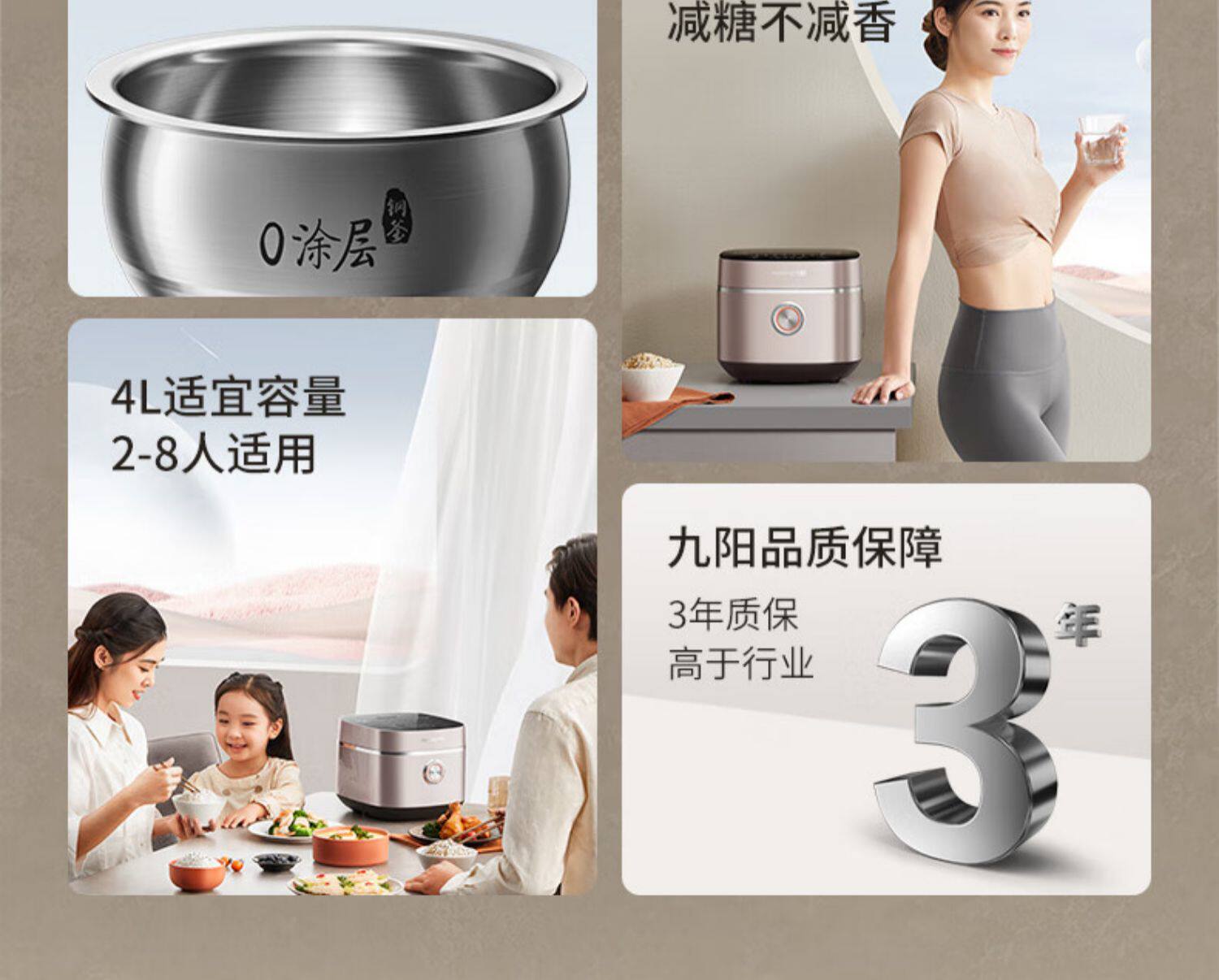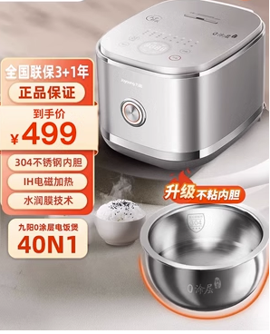 九阳电饭煲家用0涂层电饭锅多功能4升IH不锈钢球形内胆锅旗舰40N1